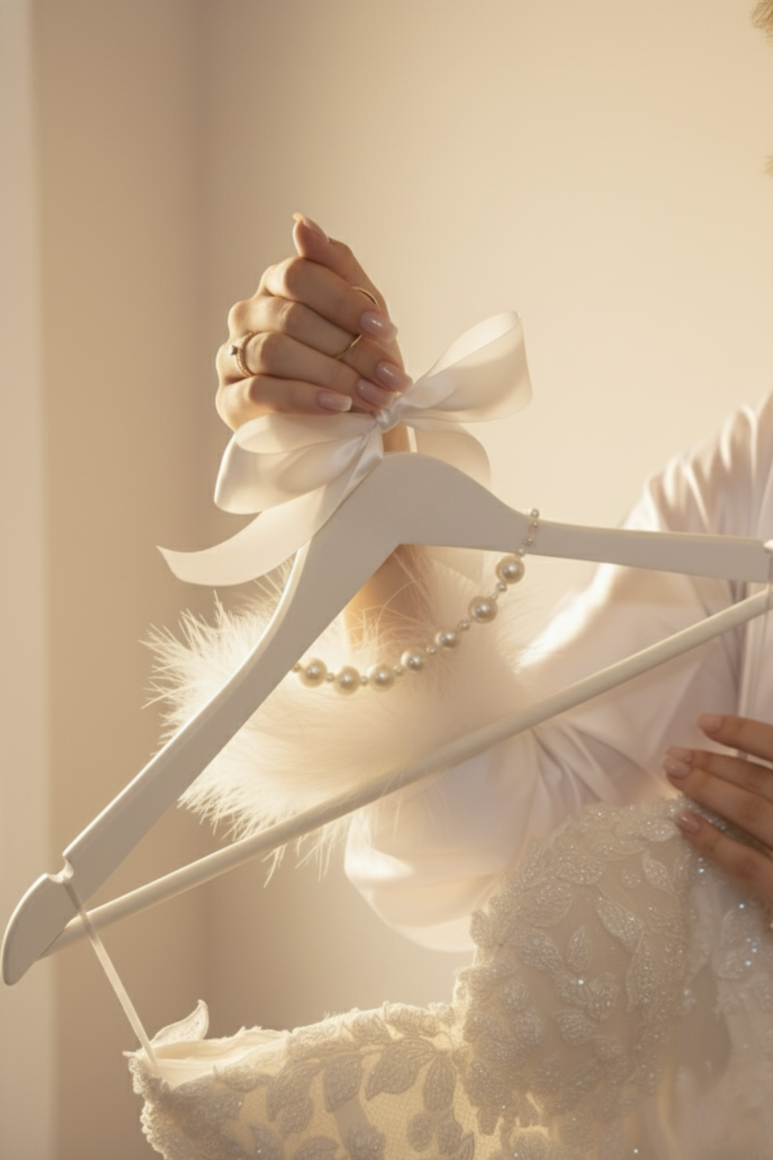 E, claro, os cabides personalizados são um toque de carinho e sofisticação que faz toda a diferença. Com nome, logo ou data do casamento, eles vão muito além da função prática: tornam-se lembranças afetivas e enriquecem o cenário das fotos que durarão para sempre.