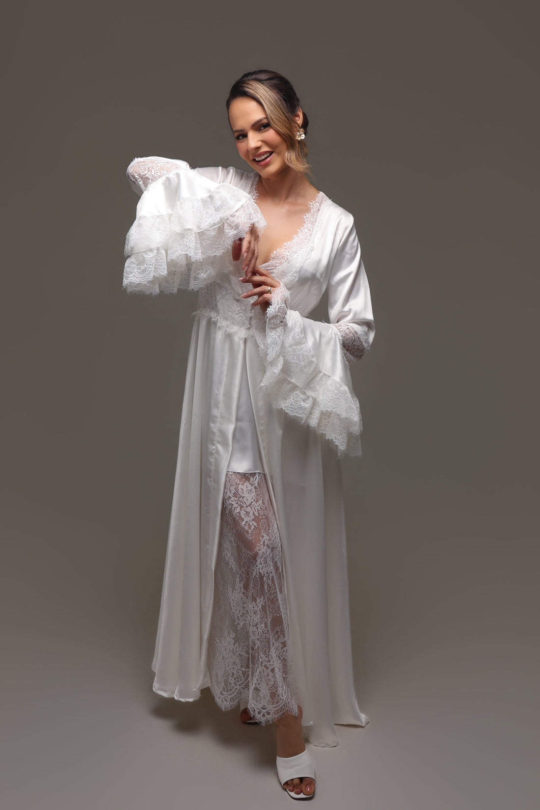 Robe Muller com Mangas Flair Bordadas em Miçangas para noivas Romanticas