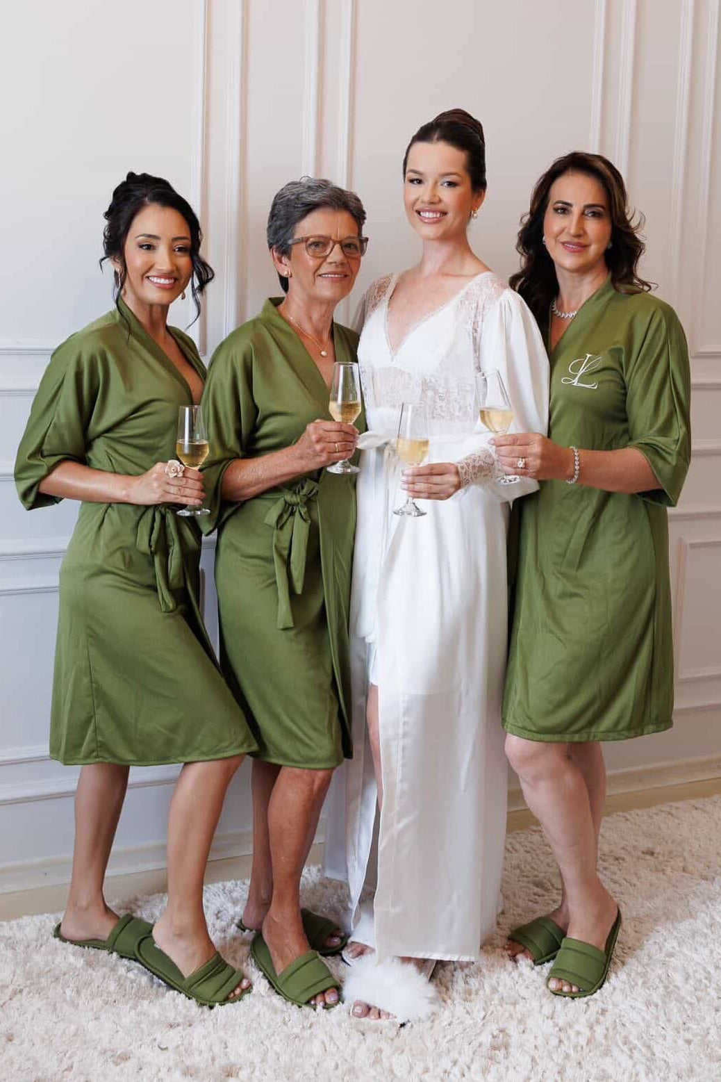 Kit Robe + Pantufa Chinelinho Verde Oliva Merida Madrinha e Mãe