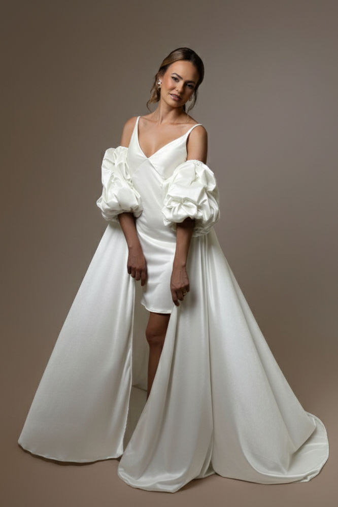 Robe Muller com Mangas Flair Bordadas em Miçangas para noivas Romanticas