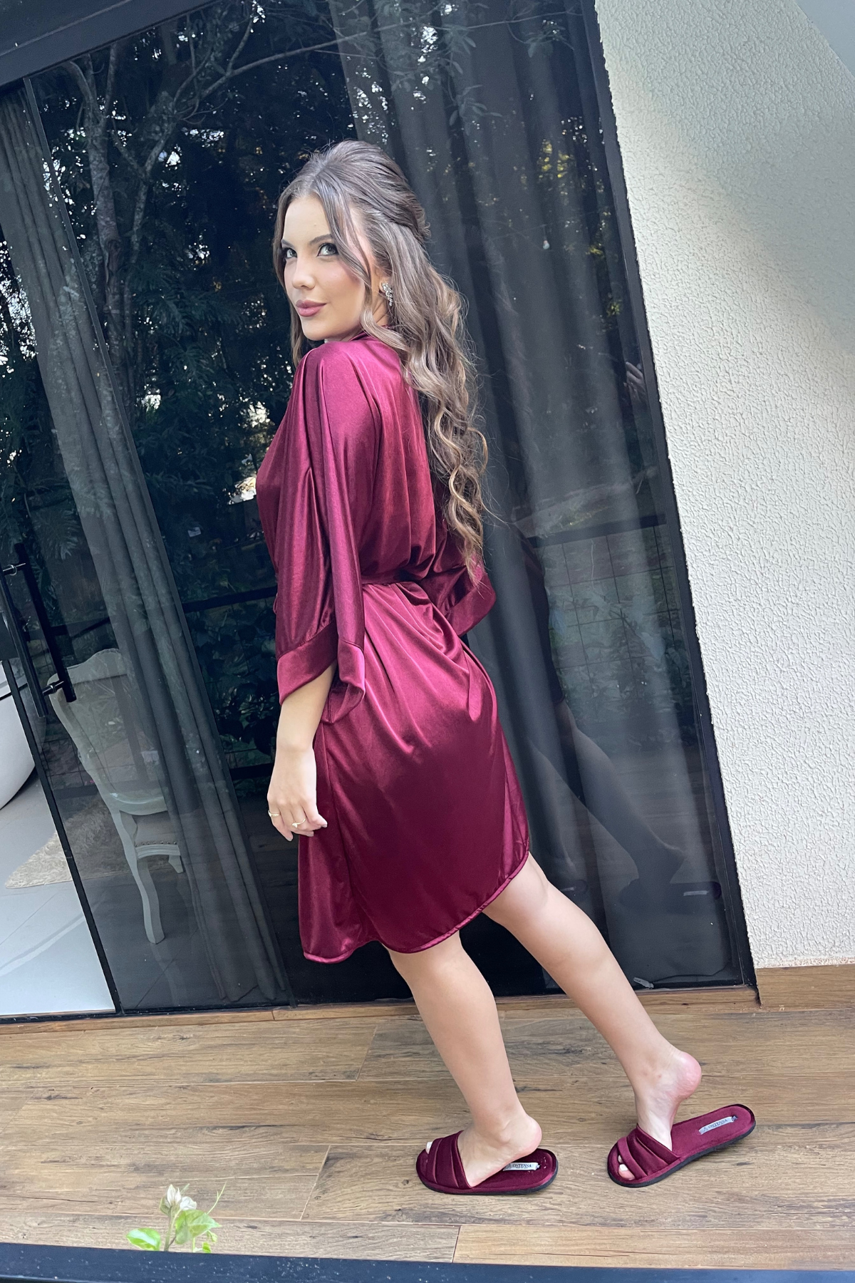Kit Robe + Pantufa Chinelinho Ceti Bordô Para Madrinhas e Mãe
