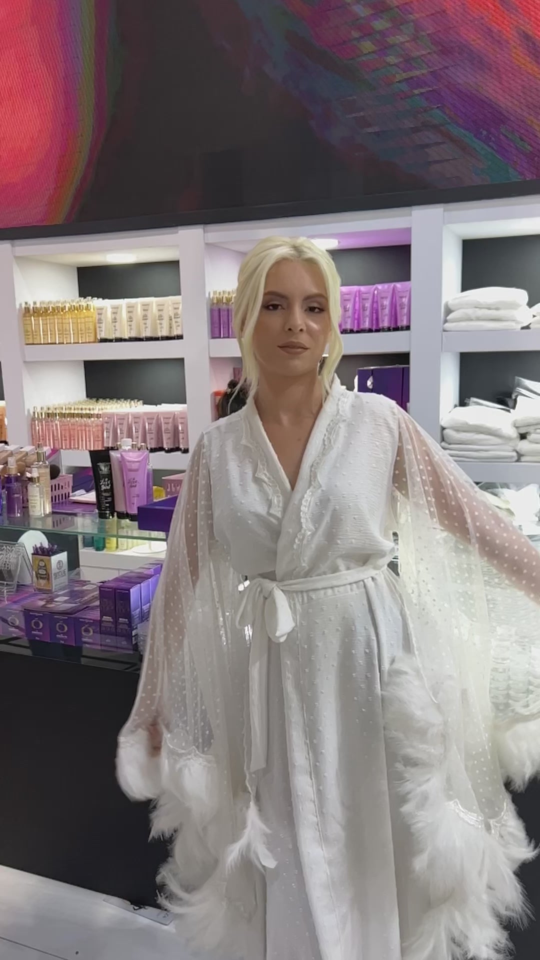 Enquanto a noiva se prepara para o grande dia, o robe oferece conforto absoluto, envolvendo o corpo com leveza durante cada etapa do make e do hair. Mais do que vestir, ele acolhe e transforma o momento dos bastidores em uma lembrança ainda mais especial.