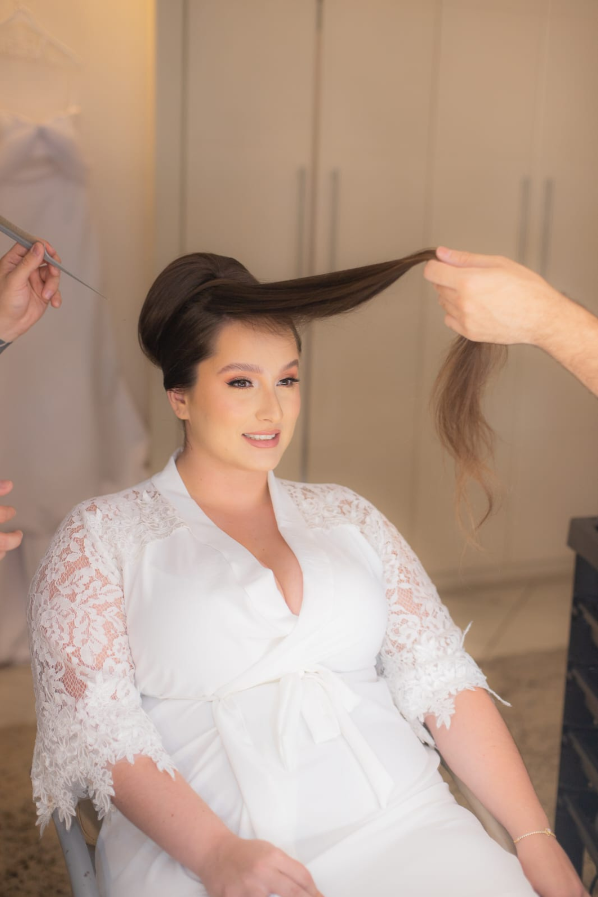 No instante que antecede o tão esperado “SIM”, a noiva precisa estar cercada de conforto e elegância. O robe traz a leveza do tecido macio aliada à sofisticação dos detalhes, oferecendo bem-estar nos preparativos e realçando a beleza em cada foto que eternizará esse momento único.