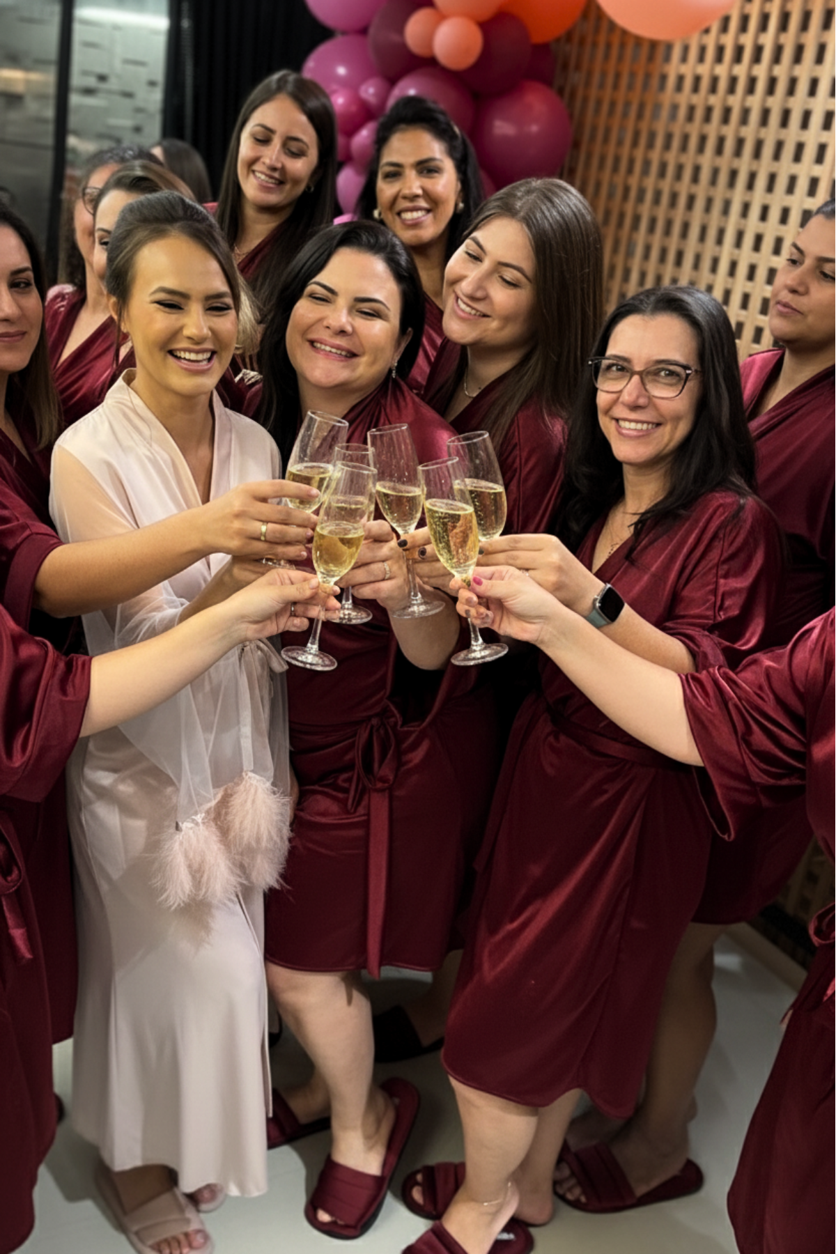 No making off, madrinhas e mães ganham destaque com o robe, que une praticidade, conforto e sofisticação. Além de facilitar os preparativos, garante delicadeza nos momentos de brinde e torna as fotos memoráveis.
