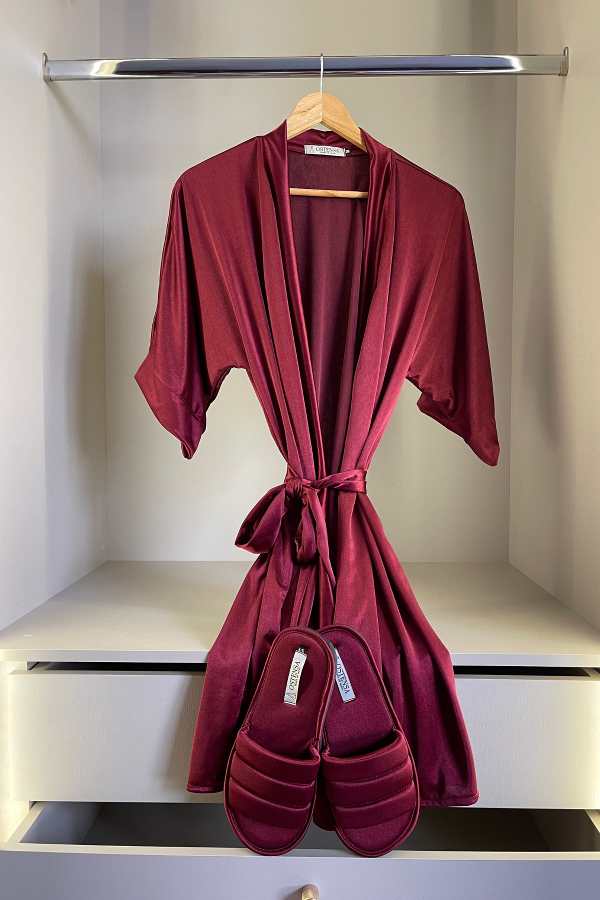Perfeito para registrar momentos especiais, o Robe Merida oferece conforto e beleza às madrinhas e mães no dia da noiva. Produzido em tecido que não amarrota facilmente, não reflete luz, é prático e sofisticado. Adquirindo com o bordado exclusivo e pantufa, ele se torna inesquecível.