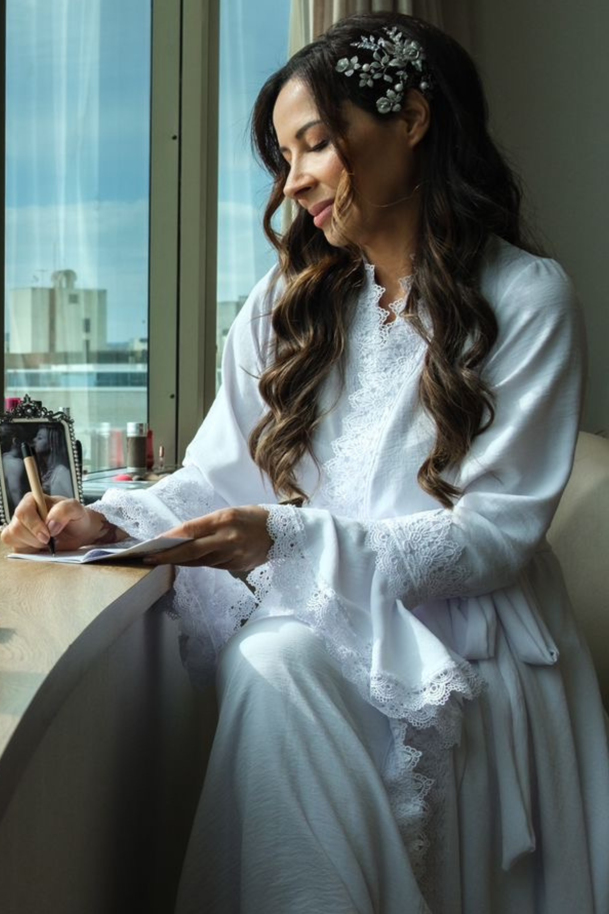 A noiva que escolhe o Robe Elza é elegante, confiante e romântica. Ela valoriza cada detalhe do seu grande dia e deseja que o making of seja lembrado com luxo, emoção e memórias eternas. Para ela, conforto e beleza caminham juntos, sempre acompanhados de sofisticação.