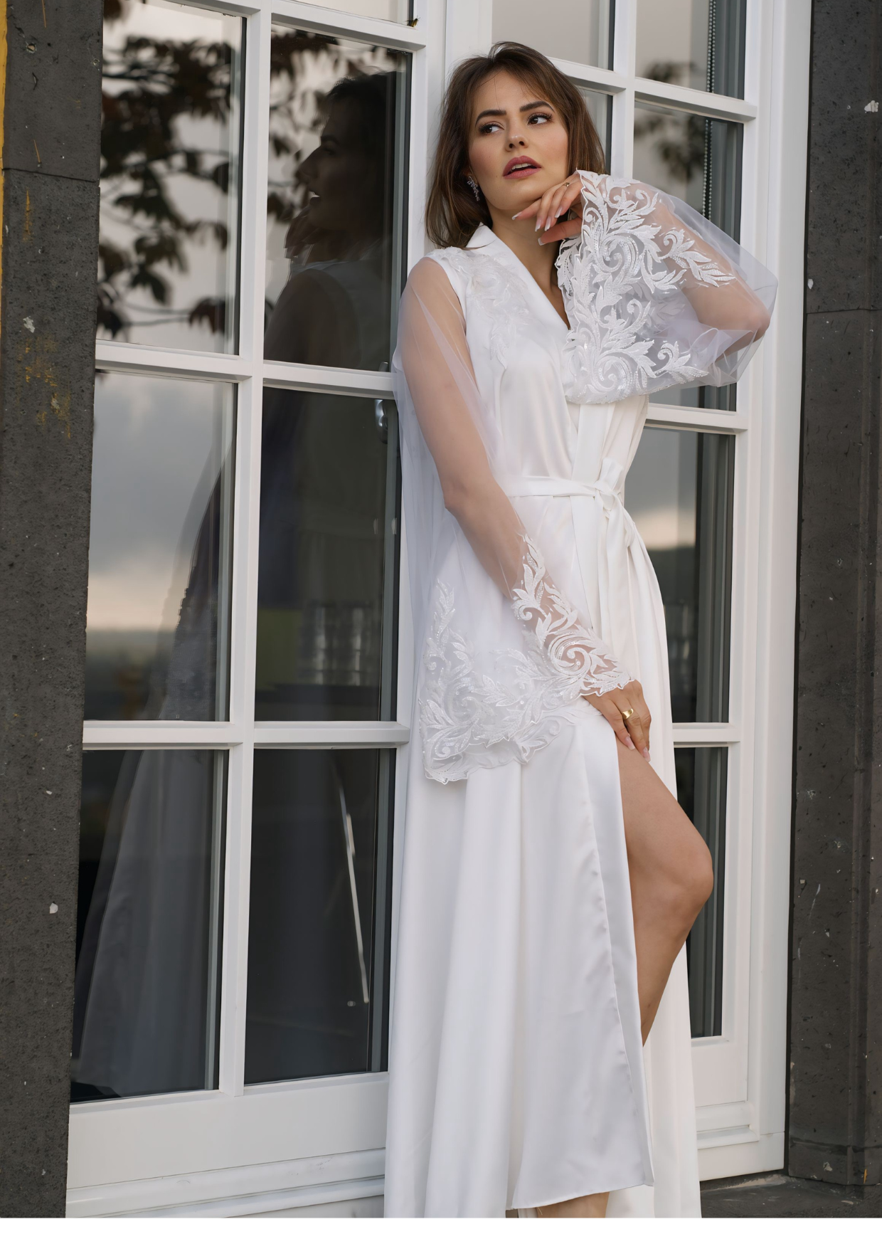 A noiva que escolhe o Robe Muller é sofisticada, moderna e carrega a essência do romantismo em cada detalhe. Ela valoriza luxo, exclusividade e deseja que suas fotos transmitam confiança, leveza e delicadeza em perfeita harmonia. Segura de si, transforma o making of em um cenário de requinte e autenticidade, onde cada registro reflete sua essência única. É uma mulher elegante e sonhadora, que entende que os preparativos também merecem ser eternizados.