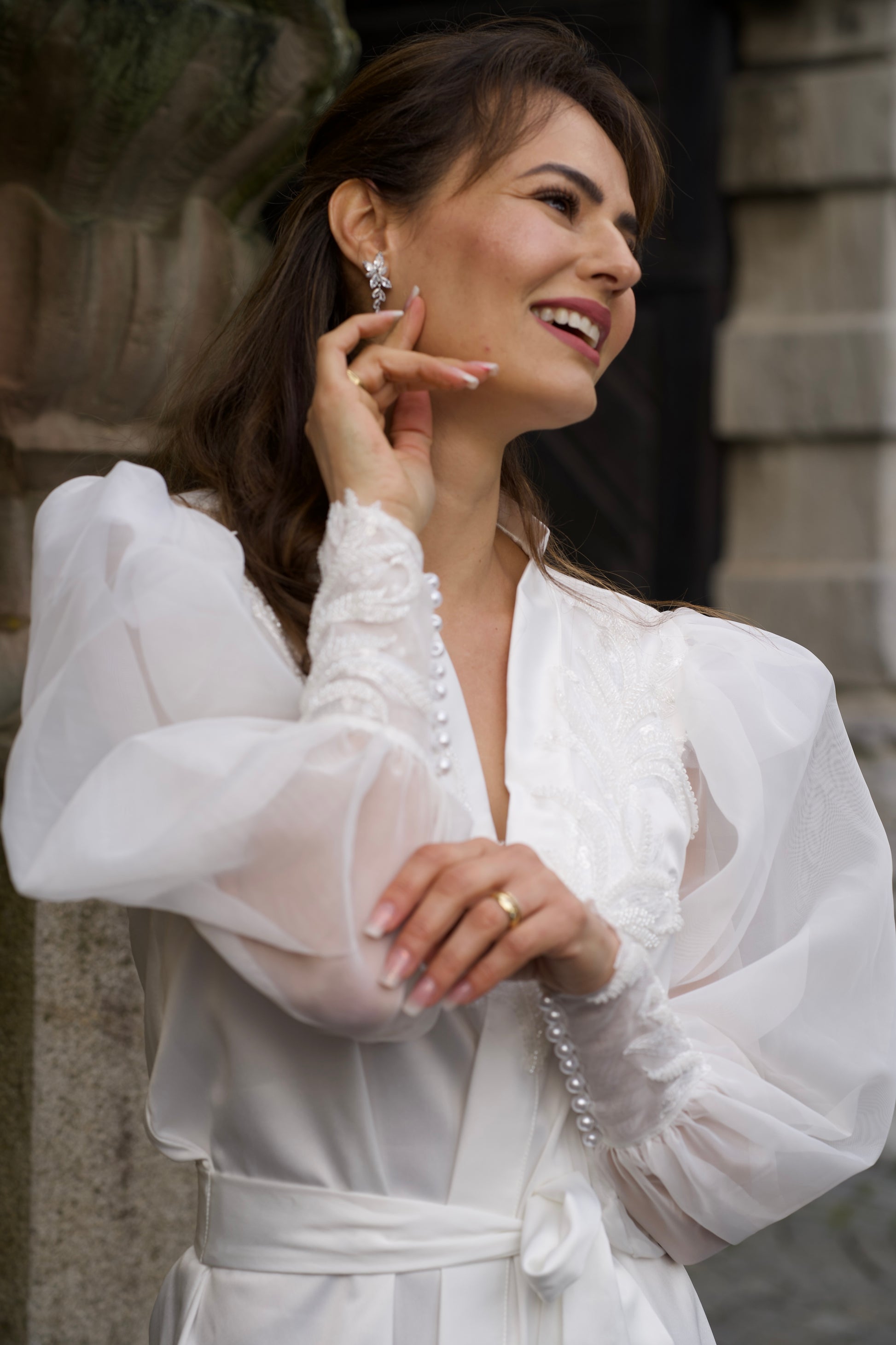 A noiva que escolhe o Robe Munique é sofisticada e atenta a cada detalhe do seu grande dia. Ela valoriza o luxo discreto e sabe que sua preparação merece tanto charme quanto a cerimônia. Romântica e elegante, encontra beleza na suavidade do tecido e no brilho sutil dos cristais, transformando o making of em um cenário de imponência e poesia. Seu perfil é o de uma mulher que deseja eternizar momentos com delicadeza, sofisticação e memórias dignas de sua essência única.