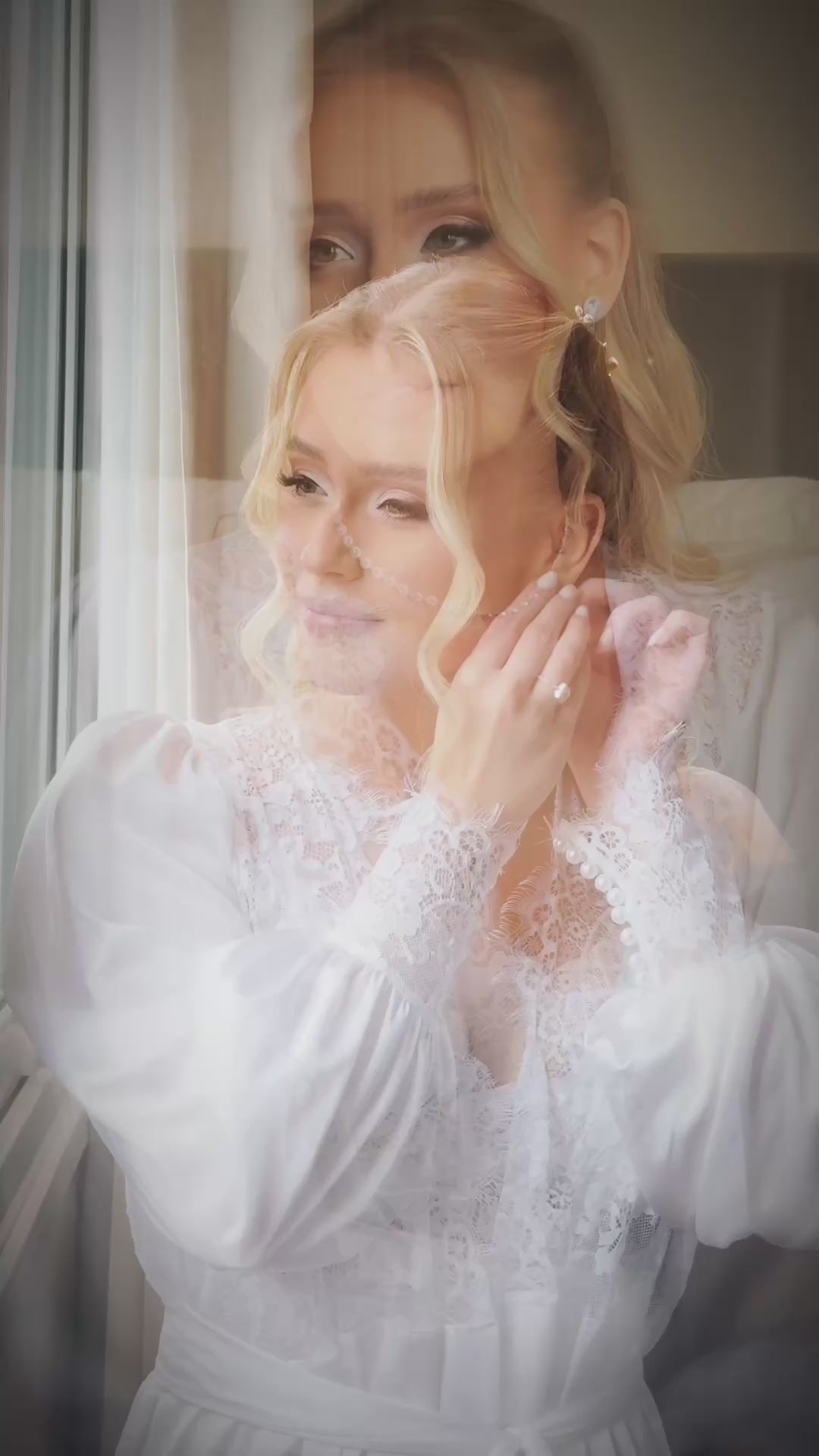 A noiva que escolhe este conjunto é sofisticada, sonhadora e apaixonada por detalhes que revelam sua essência. Ela valoriza cada instante da preparação como parte de uma história única e deseja eternizar memórias cheias de encanto. O robe longo reflete imponência e suavidade, enquanto a camisola curta traz feminilidade na medida certa. Refinada e romântica, é uma noiva que busca exclusividade, conforto e elegância para viver o making of de forma inesquecível.