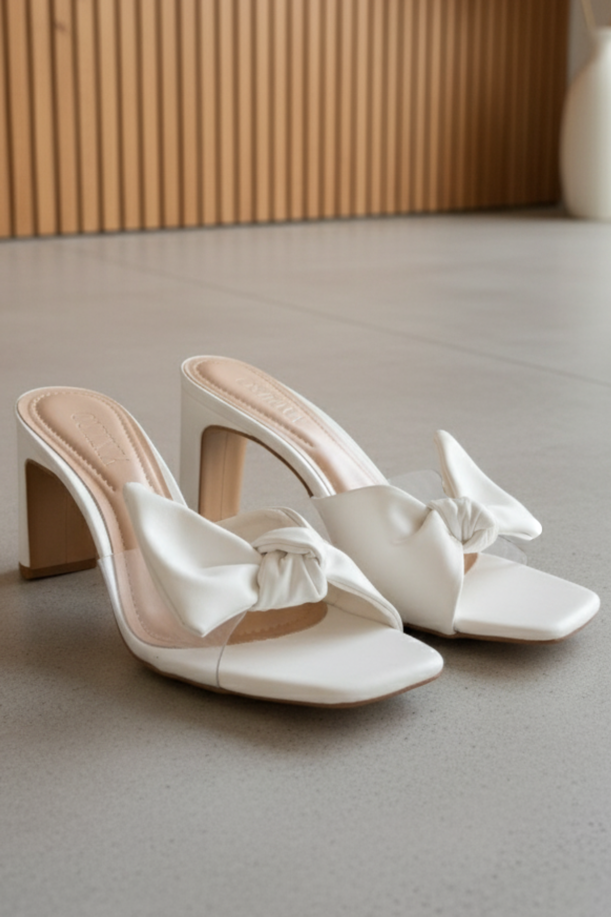 Tamanco Mavie para Noiva com Laço e detalhe transparente
